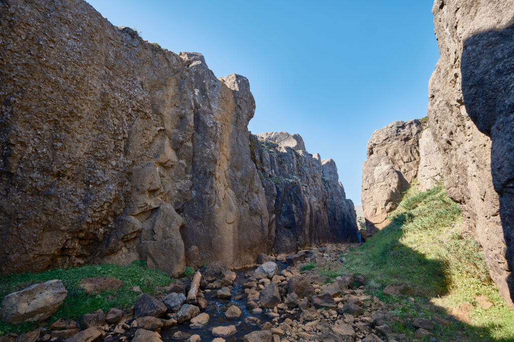 My spacer rozpoczęliśmy od wschodniej strony wąwozu i szerokim łukiem go obeszliśmy. W dogodnym do przejścia miejscu przeszliśmy na drugą stronę rzeki, aby wrócić stroną zachodnią. Na koniec weszliśmy do środka szczeliny, by podejść bliżej wodospadu.