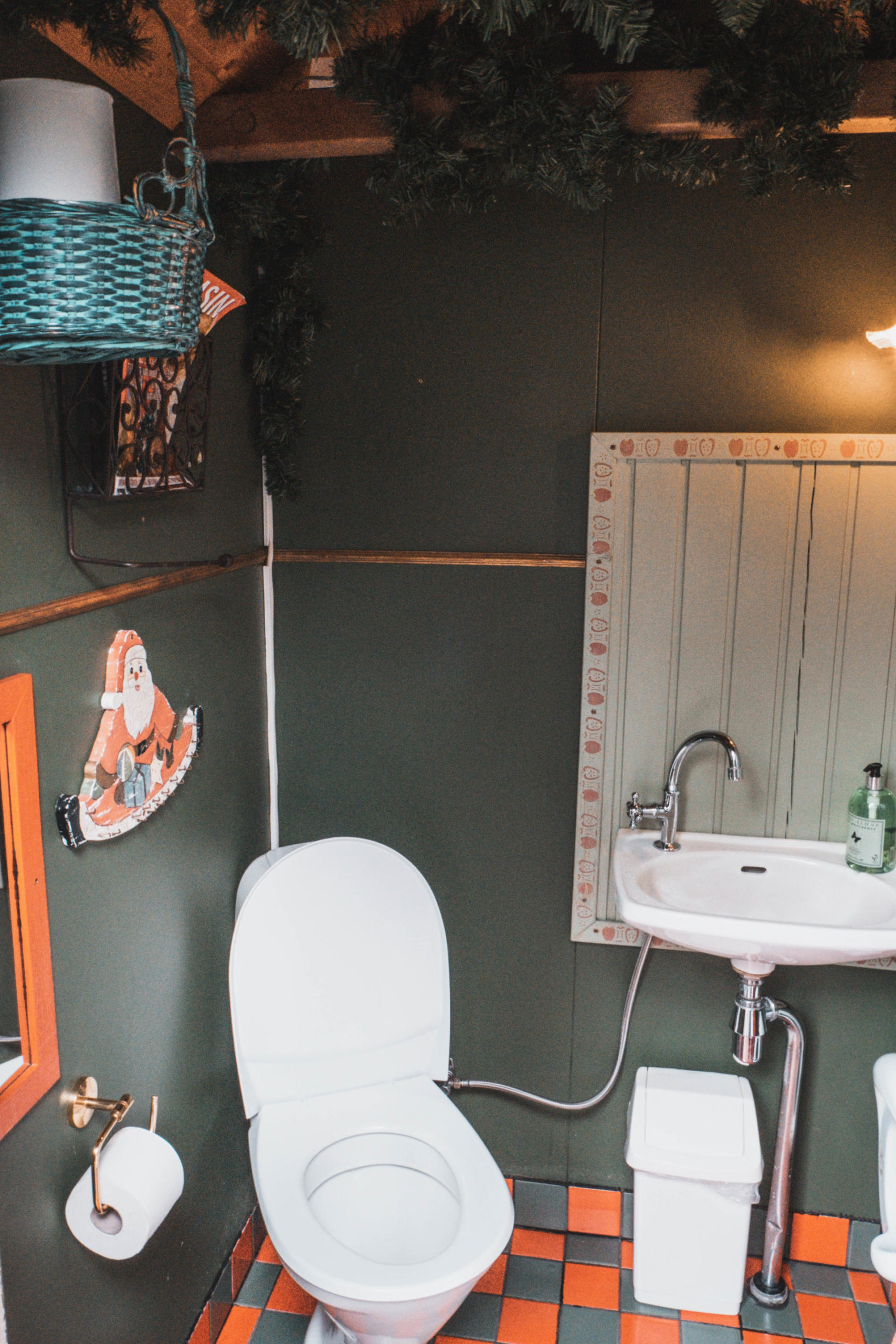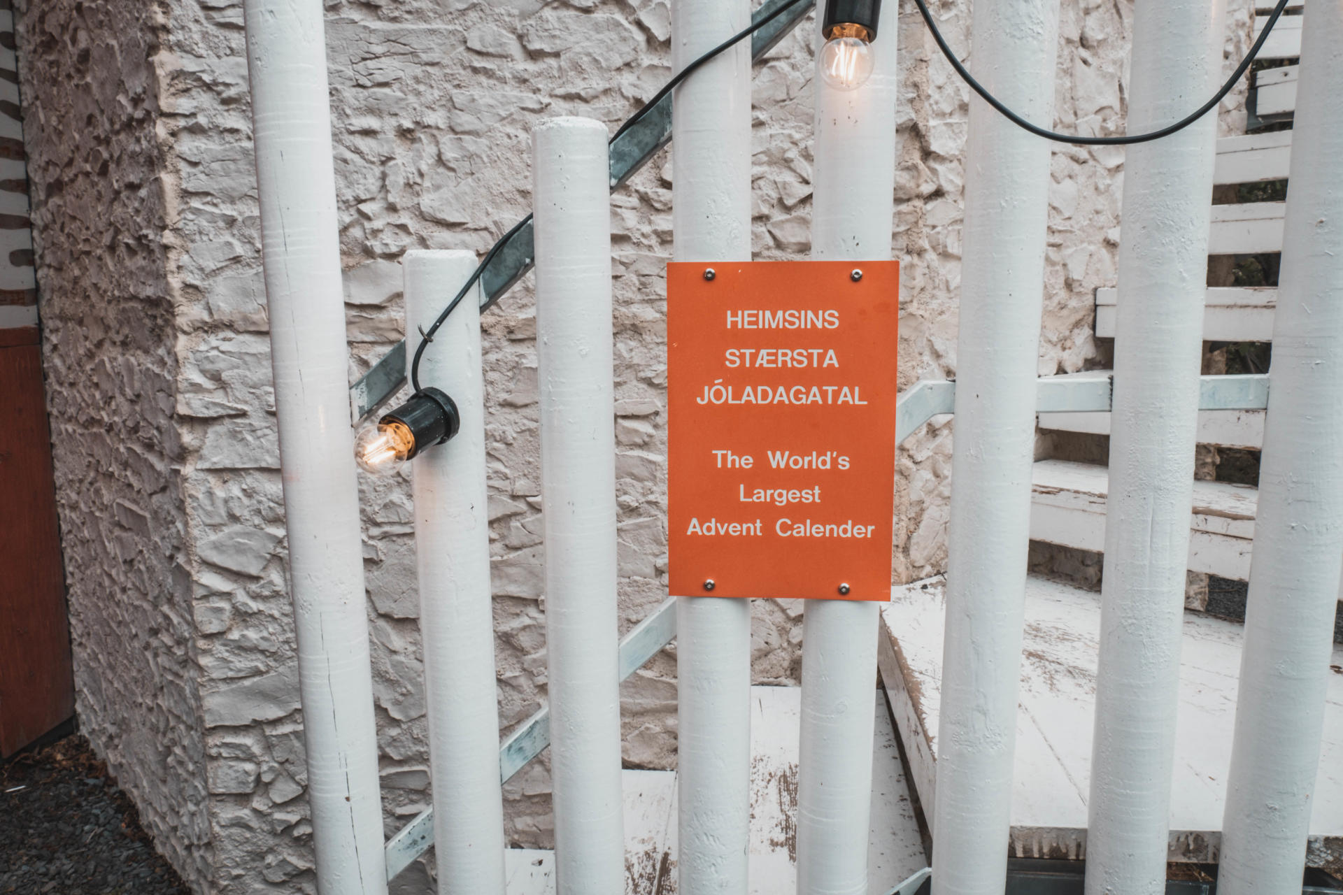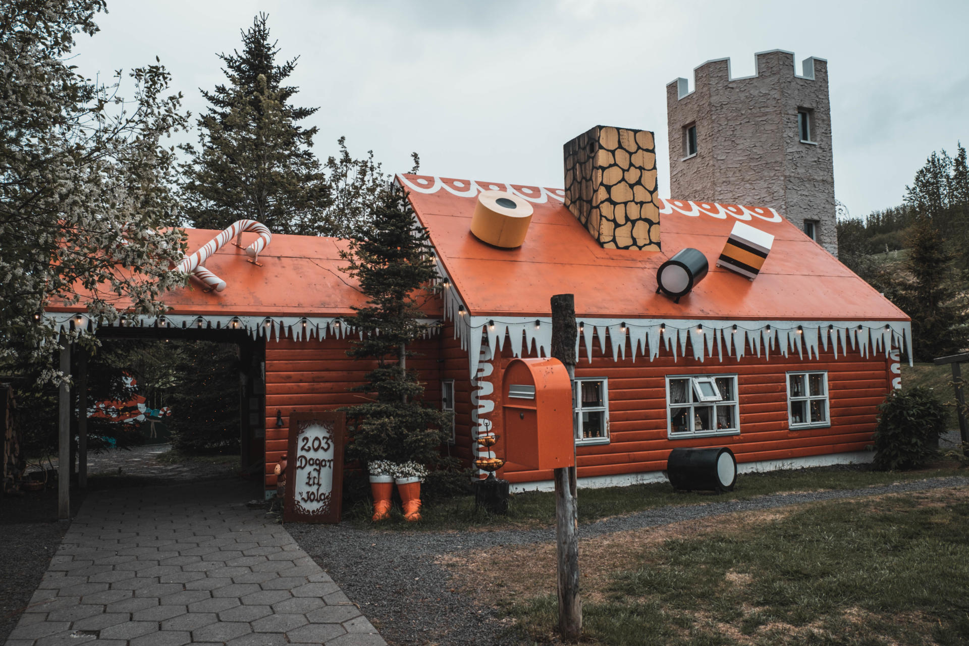 Natomiast wokół świątecznego domku znajduje się baśniowy i również w świątecznym charakterze ogród – Jolagardurinn (Jólagarðurinn). Znajdują się tam ławki ze stolikami, także można skorzystać z tego miejsca i zjeść w ładnym otoczeniu posiłek. W ogrodzie można również zobaczyć miniaturową replikę kościoła z murawą oraz… najpiękniejszą toaletę na Islandii!